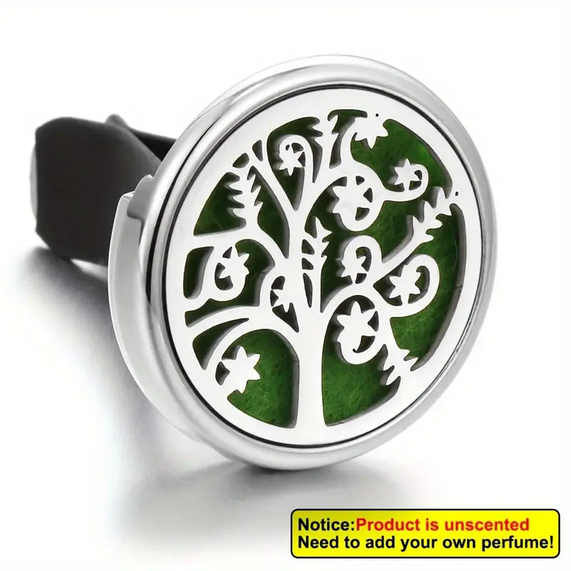 Metallic car air freshener with tree design on a white background